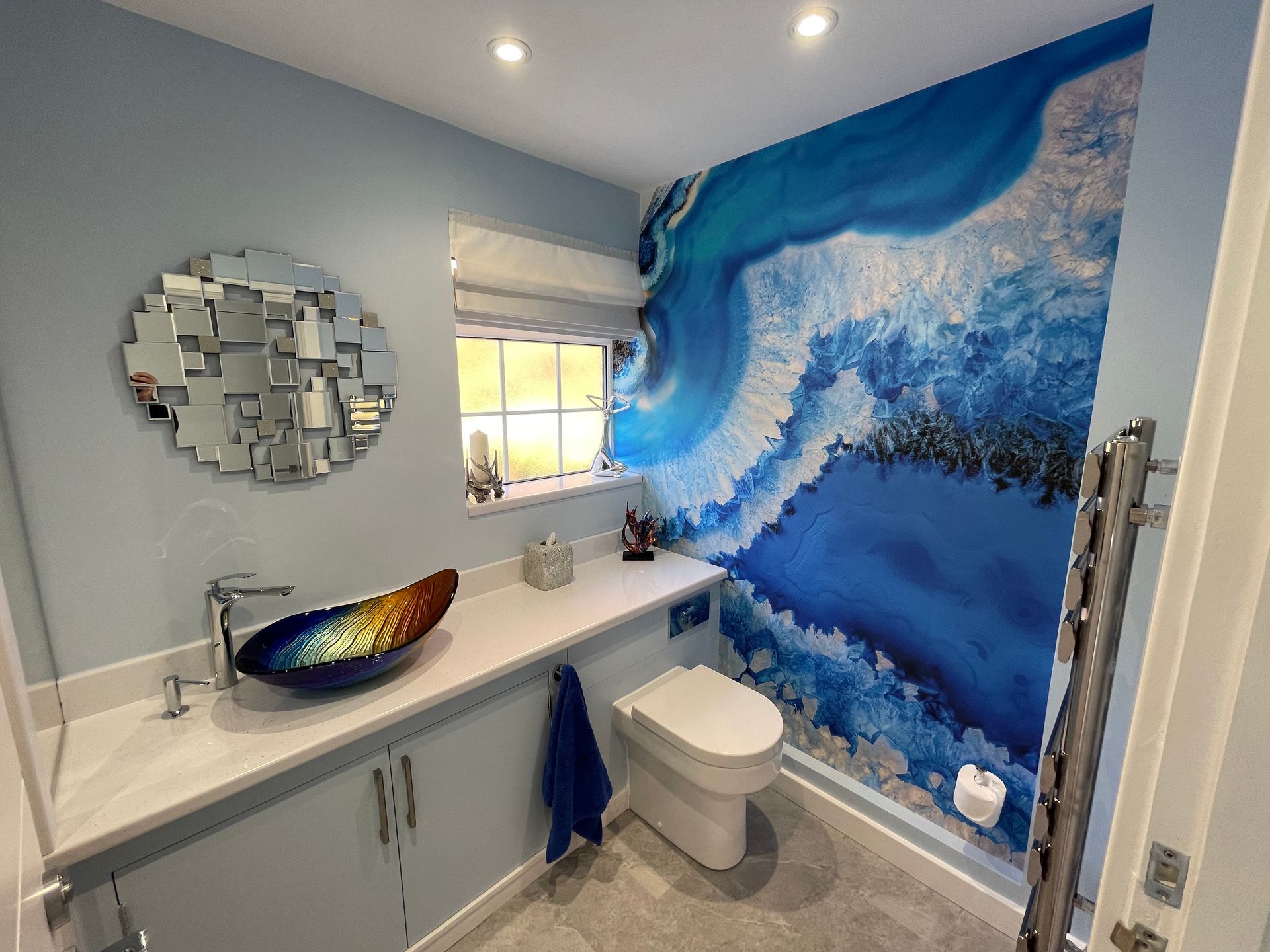 And so that's what I drew down and they agreed. They did a few tweaks here and there, but all with my approval. And then I decided that I wanted to have a utility room and an en-suite. So the old kitchen, nothing wrong with it. It was quite nice, but it was ripped out and split in two and half became my en-suite and the other half a utility room which has been extremely useful. Then the last thing that I really wanted to tackle was a very old fashioned bathroom with two windows, tiled throughout, swags and tails that really were not my style and the bath that I never used. So they took the bath out and their joiner made bespoke units for me for the new cupboards and also the cupboards underneath and they've made a really good job of it.